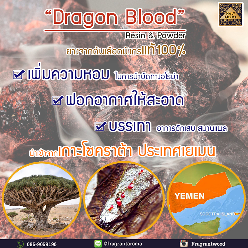 เลือดมังกรแท้ 100% (Dragon Blood) นำเข้าจากประเทศเยเมน สีแดงเข้ม กลิ่นหอมจะช่วยฟอกอากาศ หรือ ฆ่าเชื้อโรคได้