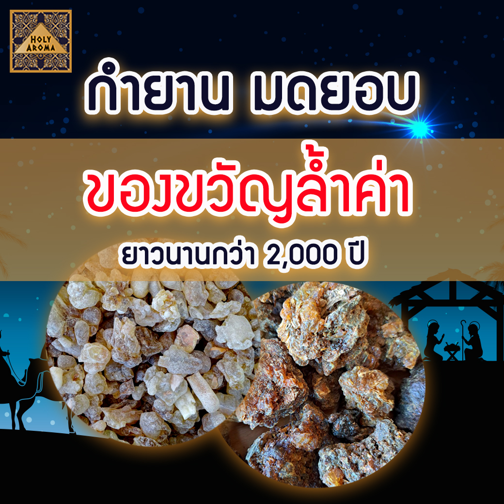 ในพระคัมภีร์ Bible ของศาสนาคริสต์ กำยาน และมดยอบ เป็นหนึ่งในของขวัญ ที่ถูกนำไปมอบให้พระกุมารเยซู